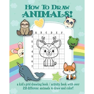 How to draw Animals: a grid drawing book & kids art activity for girls learn animals, animals kids, ... journal, kawaii