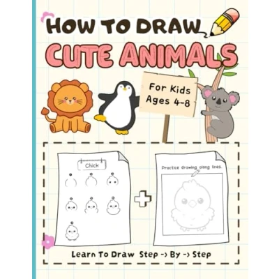 How To Draw Animals for Kids: Cute Drawing, Simple And Easy Drawing Step by Step, Cartoon Book Kids Ages 4 8