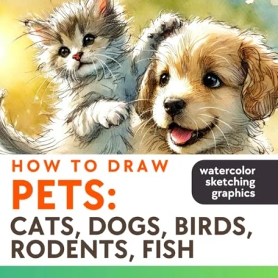 How to draw Pets: cats, dogs, birds, rodents, fish in watercolor, sketching, graphics: Pencil Sketches of Animals and Paint with Watercolor