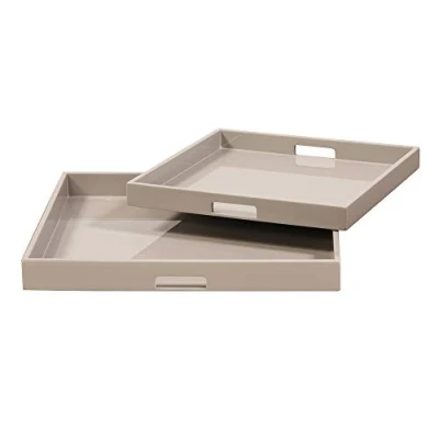 Durable Square Tray Set: Set of 2 square wood trays with glossy taupe finish for versatile use Oven Safe: Trays can be used for serving food directly from the oven Wipe Clean: Trays are easy to clean with a dry cloth Wedding, Party: Great for serving food at parties, weddings, anniversaries Made of Quality Wood: Crafted from durable square wood with glossy finish