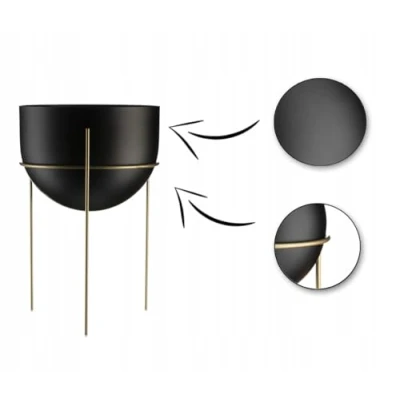 LOFT STYLE: The modern, unique design makes this flower stand a key element in the decoration of any apartment, room or house. Universal use: ideal for use both indoors and outdoors - on the balcony, in the garden, in the gazebo or on the porch. ELEGANT COLORS: The flower stand in gold color with a black insert adds elegance and sophistication to any interior. Robust construction: made of steel wire and a metal plate insert, powder coated, guarantees resistance to external influences and deformation. HANDMADE Each plant stand is carefully and hand-crafted to ensure its unique quality and attention to detail.