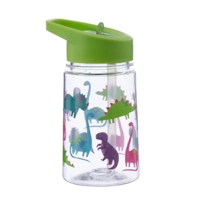 HOX 350ml Kids Water Bottle BPA Free Plastic PP, Flip Top Lid, Reusable & Leak Proof Design, Lightweight Durable for School Travel Dinosaurs