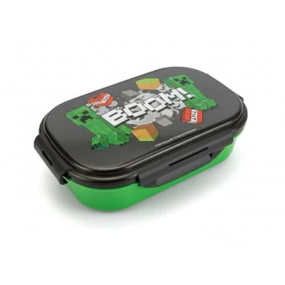 Official Minecraft Creeper BOOM bento lunch box featuring bold pixel-art Creepers, TNT crates and explosion graphics, perfect for young fans who love bringing the world of Minecraft to school every day. Two internal compartments keep snacks, fruit and sandwiches neatly separated, helping children enjoy a well-organised lunch inspired by their favourite Minecraft mobs and in-game pixel-block style. Secure lid with four side latches creates a reliable leak-proof seal, keeping food fresh and contained inside the lunch box for worry-free travel in backpacks, lunch bags or school rucksacks. Includes a matching green spork stored conveniently inside the lid compartment, so kids always have a handy all‑in‑one utensil for lunchtime at school, picnics, clubs or days out. Durable BPA-free plastic design in iconic green-and-black Creeper colours, easy to clean and dishwasher safe; fits most lunch bags at 23 x 20 x 8 cm for everyday practicality., Manufacturer: Hox