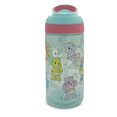 The Care Bear water bottle is designed with a wide mouth and flip-up spout that allows comfortable sipping and has a spout seal to help keep it clean & germ free when closed. Made from durable, single-wall PP plastic, the cartoon bear design water bottle ensures enhanced safety and long-lasting re-usable utility. Lightweight and portable, the teddy bear water bottle is easy to carry for school, sports practice, or picnic. The teddy bear water bottle with strap has sufficient 16 Oz capacity that keeps kids hydrated throughout the day. The teddy bear drinking bottle has rubber neckband for comfortable grip and spill-free sipping. Carry loop design of the care bear tumbler offers a comfortable grip, suitable for kids and Care Bears fans of all ages. The bear water bottle with straw is easy to clean due to a detachable lid (hand wash recommended to prolong the condition of the bottle).