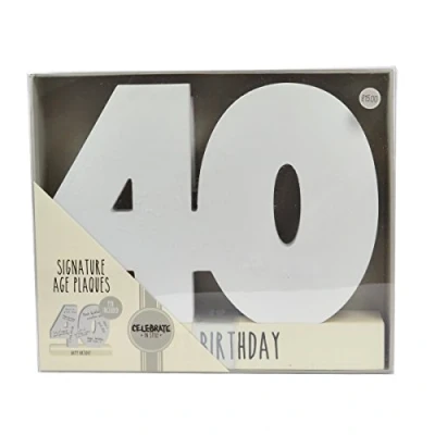 HOX Collection Celebrate in Style White Wooden 40th Birthday Signature Age Plaque with Black Marker Pen Freestanding Wrapped Numbers to Sign Perfect Personalised Gift for Birthdays