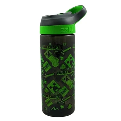 HOX Minecraft Atlantic Green Creeper Drinks Bottle Eco Freindly BPA free Plastic School Water with Removable straw, spills Proof Gift for fan Officially Merch 600ML