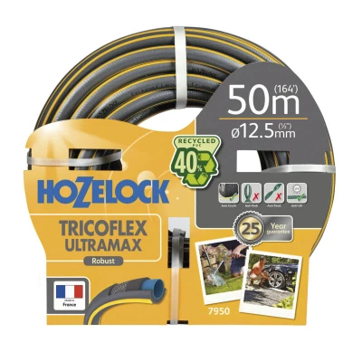 General description The Hozelock 7950 Tricoflex Ultramax Anti-Crush Hose is designed for durability and ease of use. With a robust outer layer, this hose is built to last for many years, making it an excellent choice for garden watering needs. Technical specifications Length: 50m Structure: 5-layer knitted, reinforced Technology: TNT™ (Tricoflex Non Torsion) Features: ErgoRibs for improved grip Soft & Flex Technology for resistance to kinking Guarantee: 25 years