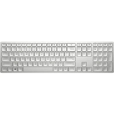 HP 970 Programmable Wireless Keyboard Bluetooth, 2.4 GHz Wireless, SMART Backlit, 20+ Keys, HPAC, AES 128 Encryption, Connect Up to 3 Dev, Rechargeable, 6 months Battery Life Silver