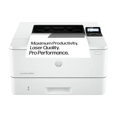 GET BLAZING FAST PRINTING SPEEDS AND EASY MANAGEMENT TOOLS WITH LASERJET PRO: The HP Laserjet Pro 4002dn is perfect for your small/medium business: Effortlessly print with automatic 2-sided printing, 350 sheet standard paper capacity, and prints in black and white at up to 42 pages per minute letter and 40 pages per minute A4 MAXIMUM PRODUCTIVITY: Support your dynamic work team with this high-speed printer, ideal for up to 10 users, step up your workflow, HP Pro-class print speed reaches up to 42 ppm to meet high-demand environments, get productivity in the palm of your hand, print and save time with Shortcuts from HP Smart SEAMLESS MANAGEMENT: Centralise your print management, HP Web Jetadmin makes it easy with its suite of features, set up your printers quickly, streamlined setup makes it easy to set up and get back to business HP WOLF PRO SECURITY: Get printer security out of the box, preconfigured settings mean it's ready when you are, add a layer of security, PIN/pull option authenticates your print jobs only when you're present SUSTAINABLE PRINTING: Save up to 20 percent energy, EcoSmart toner with JetIntelligence balances premium quality with sustainability, start saving paper right out of the box, the default duplex setting prints on both sides to cut usage in half, meet the industry standard for efficiency with Energy Start rating WHAT'S IN THE BOX: HP LaserJet Pro 4002dn Printer; Preinstalled HP Black Original LaserJet Toner Cartridge (2,900 pages); Getting Started Guide; Support Flyer; Warranty Guide; Regulatory Flyer; Power cord DYNAMIC SECURITY ENABLED PRINTER: Certain HP printers are intended to work only with cartridges that have a new or reused HP chip or electronic circuitry, these printers use dynamic security measures to block cartridges using a non-HP chip or electronic circuitry, periodic firmware updates will maintain the effectiveness of these measures and block cartridges that previously worked, reused HP chips and electronic circuitry enable the use of reused, remanufactured, and refilled cartridges