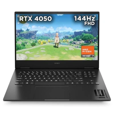 ENJOY POWERFUL FUN ANYWHERE: The OMEN 16 inch gaming laptop is ready to go wherever you are, enjoy desktop-level power with a 7000 Series AMD Ryzen 7-7840HS processor and a modern NVIDIA GeForce RTX 4050 graphics card, both regulated by enhanced internal cooling, the screen is equally impressive with high resolution, smooth framerates, and anti-glare features DESKTOP LEVELS OF POWER ANYWHERE: The processor, graphics card, and memory to handle the neediest of games wherever you may be LAPTOP COOLING EXCELLENCE: Performance doesn't matter if your laptop sounds like a jet AMD RYZEN 7 PROCESSOR: With 8 cores, 16 threads, and a 20 MB cache, this is a multi-threaded performance beast. The newly-designed, ultra-efficient architecture dominates even the most CPU intensive games, without issue BEYOND FAST: NVIDIA GeForce RTX 40 Series GPUs are beyond fast, powered by the NVIDIA Ada Lovelace architecture which delivers a leap in both performance and AI-powered graphics, experience lifelike virtual worlds with ray tracing and ultra-high FPS gaming AMD FREESYNC TECHNOLOGY: See and feel the difference of fluid, responsive gameplay, by synchronizing the refresh rate with your GPU, AMD FreeSync makes display stutter, input lag, and screen tears ancient history 144 HZ FHD ANTI-GLARE DISPLAY: Reduce frustrating lag and image ghosting with a display that combines a 144 Hz refresh rate and a 1080p resolution for smooth, crisp gameplay FLICKER-FREE: Using DC Dimming technology that controls brightness by adjusting direct current rather than cycling the backlight, we can eliminate screen flickering for more comfortable viewing ENJOY 1-MONTH OF HIGH-QUALITY GAMES: Use the Xbox App to play hundreds of high-quality PC games with friends including new day one titles and get an EA Play membership, with games added all the time, you always have something new to play, Xbox Game Pass Ultimate also enables you to play console games on your Windows PC with cloud gaming, and chat with friends across PC, mobile, and Xbox console DTS: X ULTRA TECHNOLOGY: By producing authentic, spatially accurate 3D sound through any headset, this technology offers specially tuned audio modes for different game types to provide immersion for the best entertainment experience possible