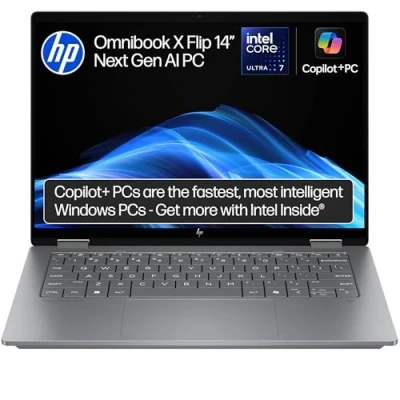 HP OmniBook X Flip NGAI 14" PC Touchscreen Intel Core Ultra 7 1000GB SSD Windows 11 AI Companion Backlit keyboard Poly Studio Up to 14 hrs and 45 minutes battery fm0001sa