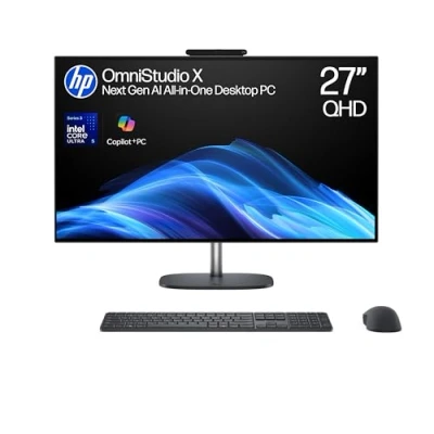 ELEVATE YOUR WORKSPACE WITH AI-DRIVEN POWER: Bring beauty and power to your workspace with the HP OmniStudio X 27-inch All-in-One Desktop, powered by Intel Core Ultra processors. Enjoy a stunning 27” Neo:LED display and AI-driven performance that makes every project, call, and creative task feel effortless and inspiring. A WORK OF ART THAT WORKS LIKE A MACHINE: Tackle creative work, multitasking, and everything in between with ease with the best desktop computer for working from home. YOUR FRONT-ROW SEAT TO EVERY PIXEL: See every detail come alive on the 27" Neo:LED display, perfect for working from home or video editing. A DESIGN YOU'D BE PROUD TO SHOW OFF: Experience stylish comfort and effortless viewing from any angle with this HP all-in-one 4- sided borderless, tiltable design. INTEL CORE ULTRA 5 SERIES 3 PROCESSOR: No trade-offs. Intel Core Ultra Series 3 processors deliver what matters: powerful performance and built-in graphics and AI to revolutionize how you create, game, and work. Feel the power of Intel Inside. Built-in Intel Graphics handle everyday entertainment and multitasking with ease and no extra GPU. QHD NEO:LED DISPLAY: Be immersed in true-to-life visuals with a QHD Neo:LED that supports 100% dual colour coverage with DCI-P3 and Adobe RGB. Discover striking brightness, deep blacks, and rich colours for all your creative and entertainment needs. VISIBLY BRILLIANT DETAIL: With 450 nits of brightness, view beautiful details, enhanced image quality, and distinct shades of colour - even in bright lighting conditions. Protect your eyes from harmful blue light with a low blue light display. POLY CAMERA PRO: Poly Camera Pro elevates your video calls with AI to enjoy crystal clear video, customizable settings and professional grade features for a truly immersive video conferencing and collaboration experience. THUNDERBOLT 4 WITH USB TYPE-C: The latest Thunderbolt solution lets you power your device or connect up to two 4K displays with a single cable and blazing 40Gbps signalling rate. XBOX GAME PASS PREMIUM 2-MONTH TRIAL: Enjoy 2 months of Xbox Game Pass Premium. Free with your new HP device. Access a library of legendary, high-quality games, get exclusive in-game perks, partner discounts, and earn points annually with Xbox Rewards.