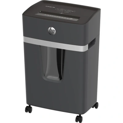 It's all about data protection. The HP Pro Shredder 10MC is an 10 sheet Micro Cut shredder that also accepts staples, paperclips and credit cards into a 220mm (A4) Entry Throat. It will shred paper into 2*15mm (P-5) pieces into a 20 litre bin.It features a paper overload visual indicator on the top of the machine and also an overheat light when the 10MC has been continuously shredding for 20 minutes. This shredder also makes use of HP's anti jam technology and will auto reverse if too much paper is inserted and features castors for ease of movement.For added peace of mine the HP Pro Shredder 10MC also comes with a full 2 year manufacturer's warranty. Sheet Capacity = 10 Sheets per Pass. Sheet Size = 2x15mm. Shred Type = Micro Cut. Din Level P-5. Throat Width = 220mm. Bin Capacity = 20 litres. Motor = 350 watts. Shred Speed = 1.6mm per minute. Operating Noise Level = 55dB. Width = 354. Depth = 240. Height = 535. Height = 535. Machine Warranty = 2 years