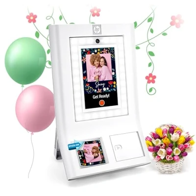 HP Sprocket Photobooth Instant 3x4 Color Photo Printer (White) Capture & Customize with 250+ Frames, Print on Zink Paper or Share via Wi Fi. Booth w/LED Ring Light, Touch Screen Mobile App.