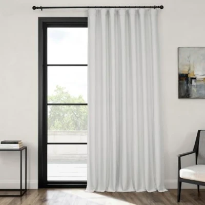 LIGHT CONTROL - This unlined curtain panel is considered Room Darkening, blocking anywhere from 80-85% of the light. Darker colors will always block more of the light while lighter colors let more of the light through. SOLD PER PANEL - Once purchased you will receive ONE PANEL (1), measuring 100 inches (254 cm) wide by 120 inches (304.8 cm) in length. Each panel will be individually bagged to preserve the fabric quality. See below for the measuring guide. HOW TO HANG - Our most versatile header allows you to hang 3 ways. Curtain panels can be sheered on a rod using the pocket, Hang with back tabs for a fixed ripple look or attached to rings using the belt and drapery pins, Hooks Not Included. COLOR & TEXTURE - This Oyster Color with Linen Texture is a perfect choice for your home decor. This curtain is unlined and has a weighted hem at the bottom. KEEP IT CLEAN - The curtains should be dry cleaned only. Fold lines can be steamed out using a iron or garment steamer. Avoid making contact with the face fabric.