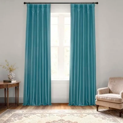 How To Hang: Our most versatile header allows you to hang 3 ways. Curtain panels can be sheered on a rod using the pocket, Hang with back tabs for a fixed ripple look or attached to rings using the belt and drapery pins. The Pole Pocket will accommodate a pole up to 1.5 inches in diameter, Hooks Not Included. What You Get: Once purchased you will receive ONE PANEL (1), measuring 50 inches (127 cm) wide by 108 inches (274.32 cm) in length. Each panel will be individually bagged to preserve the fabric quality. Choose the right curtain length with our Measuring Guide, See below. Light Control: This lined curtain panel is considered Room Darkening, blocking anywhere from 75-94.9% of the light. Darker colors will always block more of the light while lighter colors let more of the light through. Color & Texture: This Nassau Blue color is a perfect choice for your home decor. This curtain is lined and is backed with smooth off-white fabric. Keep It Clean: The curtains should be dry cleaned only. Fold lines can be steamed out using a iron or garment steamer. Avoid making contact with the face fabric.