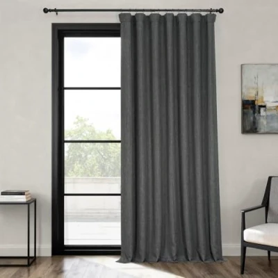 LIGHT CONTROL - This unlined curtain panel is considered Room Darkening, blocking anywhere from 80-85% of the light. Darker colors will always block more of the light while lighter colors let more of the light through SOLD PER PANEL - Once purchased you will receive ONE PANEL (1), measuring 100 inches (254 cm) wide by 108 inches (274.32 cm) in length. Each panel will be individually bagged to preserve the fabric quality. See below for the measuring guide HOW TO HANG - Our most versatile header allows you to hang 3 ways. Curtain panels can be sheered on a rod using the pocket, Hang with back tabs for a fixed ripple look or attached to rings using the belt and drapery pins, Hooks Not Included COLOR & TEXTURE - This Dark Gravel Color with Linen Texture is a perfect choice for your home decor. This curtain is unlined and has a weighted hem at the bottom KEEP IT CLEAN - The curtains should be dry cleaned only. Fold lines can be steamed out using a iron or garment steamer. Avoid making contact with the face fabric