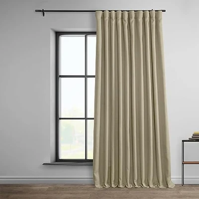 LIGHT CONTROL - This unlined curtain panel is considered Room Darkening, blocking anywhere from 80-85% of the light. Darker colors will always block more of the light while lighter colors let more of the light through. SOLD PER PANEL - Once purchased you will receive ONE PANEL (1), measuring 100 inches (254 cm) wide by 108 inches (274.32 cm) in length. Each panel will be individually bagged to preserve the fabric quality. See below for the measuring guide. HOW TO HANG - Our most versatile header allows you to hang 3 ways. Curtain panels can be sheered on a rod using the pocket, Hang with back tabs for a fixed ripple look or attached to rings using the belt and drapery pins, Hooks Not Included. COLOR & TEXTURE - This Thatched Tan Color with Linen Texture is a perfect choice for your home decor. This curtain is unlined and has a weighted hem at the bottom. KEEP IT CLEAN - The curtains should be dry cleaned only. Fold lines can be steamed out using a iron or garment steamer. Avoid making contact with the face fabric. DESCLAIMER - It is important to note that due to variations in computer monitors, there can be discrepancies in color between the actual product and what appears on your screen.