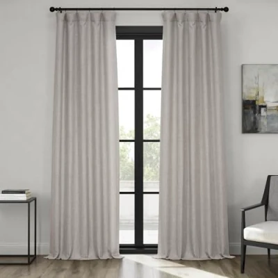 LIGHT CONTROL - This unlined curtain panel is considered Room Darkening, blocking anywhere from 80-85% of the light. Darker colors will always block more of the light while lighter colors let more of the light through SOLD PER PANEL - Once purchased you will receive ONE PANEL (1), measuring 50 inches (127 cm) wide by 120 inches (304.8 cm) in length. Each panel will be individually bagged to preserve the fabric quality. See below for the measuring guide HOW TO HANG - Our most versatile header allows you to hang 3 ways. Curtain panels can be sheered on a rod using the pocket, Hang with back tabs for a fixed ripple look or attached to rings using the belt and drapery pins, Hooks Not Included COLOR & TEXTURE - This Clay Color with Linen Texture is a perfect choice for your home decor. This curtain is unlined and has a weighted hem at the bottom KEEP IT CLEAN - The curtains should be dry cleaned only. Fold lines can be steamed out using a iron or garment steamer. Avoid making contact with the face fabric