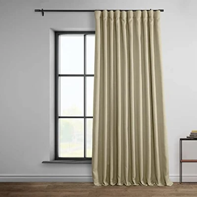 LIGHT CONTROL - This unlined linen curtain panel is considered as Room Darkening, these drapes blocks upto 80-85% of the light. Darker colors of these curtains for living room will always block more of the light while lighter shades allows more light to pass through and gives an illuminating effect to the room SOLD PER PANEL - Each linen curtain purchase includes ONE PANEL (1), measuring 100 inches (254 cm) wide by 84 inches (213.36 cm) long. Slight length variation of up to 0.5 inches may be observed due to the natural fabric and production processes. However it won't be effecting the overall functionality and look of the curtain in each design. USER APPLICATION or APPLICATION INSTRUCTIONS - These linen curtains for living rooms and bedrooms can be hanged as per choice in 3 different settings as preferred to compliment the surroundings and furniture settings: Curtain panels can be sheered on a rod using the pocket Hang with back tabs for a fixed ripple look Attached to rings using the belt and drapery pins NOTE: Hooks Not Included in the package COLOR & TEXTURE - This Thatched Tan Color with Linen Texture is a perfect choice for your home decor. This curtain is unlined and has a weighted hem at the bottom. KEEP IT CLEAN - These linen curtains or drapes should be dry cleaned separately everytime. Fold lines on curtain panels can be steamed out using a light iron with butter paper or garment steamer. Avoid making contact with the face fabric of linen curtains.