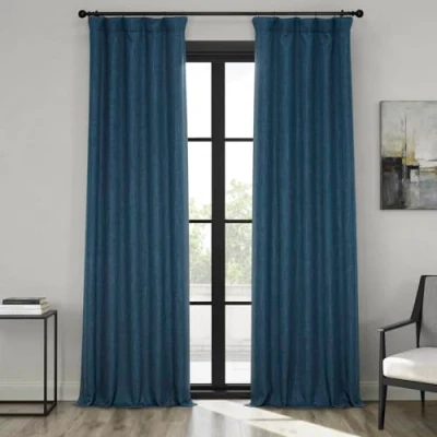 LIGHT CONTROL - This unlined curtain panel is considered Room Darkening, blocking anywhere from 80-85% of the light. Darker colors will always block more of the light while lighter colors let more of the light through SOLD PER PANEL - Once purchased you will receive ONE PANEL (1), measuring 50 inches (127 cm) wide by 84 inches (213.36 cm) in length. Each panel will be individually bagged to preserve the fabric quality. See below for the measuring guide HOW TO HANG - Our most versatile header allows you to hang 3 ways. Curtain panels can be sheered on a rod using the pocket, Hang with back tabs for a fixed ripple look or attached to rings using the belt and drapery pins, Hooks Not Included COLOR & TEXTURE - This Indigo Color with Linen Texture is a perfect choice for your home decor. This curtain is unlined and has a weighted hem at the bottom KEEP IT CLEAN - The curtains should be dry cleaned only. Fold lines can be steamed out using a iron or garment steamer. Avoid making contact with the face fabric