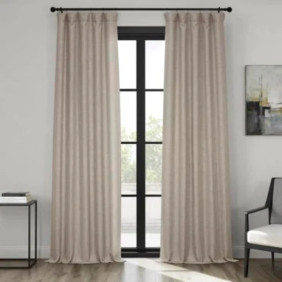 100% Polyester --These imported curtains are made of 100% polyester and are unlined. Hang using the 3" pole pocket with back tabs & hook belt. Curtains come unlined with a weighted hem. SOLD PER PANEL. Dry clean only 3 Ways to Hang: Rod Pocket, Back Tab and Hook Belt for Rings - Hooks Not Included Faux Linen Room Darkening Textured Fabric -- Bedroom curtains or any room for that matter can be hard to shop for. Our curtains provide the perfect balance of style and purpose to meet any room needing a room darkening window curtain update Fit For Any Occasion -- Available in many size options, materials and patterns, our curtains are sure to fit your patterned curtain needs and will turn your house into a home Quality -- We are in a position to provide you with the top quality curtains without the price. Available in many size options, materials and patterns, our curtains are sure to fit your patterned curtain needs and will turn your house into a home.Disclaimer: The digital images we display have the most accurate color possible. However, due to differences in computer monitors, we cannot be responsible for variations in color between the actual product and your screen