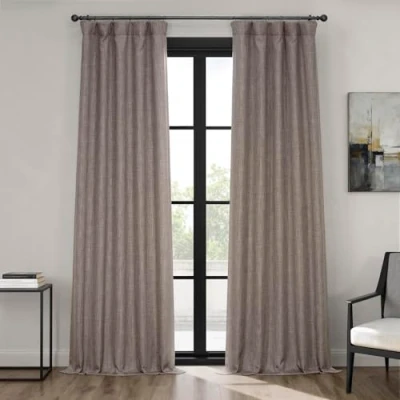 LIGHT CONTROL & COLOR VARIATION – This unlined panel is designed for room darkening, blocking 80-85% of light. Darker shades will block more light compared to lighter tones. Note: Actual colors may vary based on the lighting in your room (natural, LED, or incandescent) and monitor settings. SOLD PER PANEL - Each purchase includes ONE PANEL (1), measuring 50 inches (127 cm) wide by 108 inches (274.32 cm) in length. Please allow for a slight length variation of up to 0.5 inches due to the natural fabric and production processes. VERSATILE HANGING OPTIONS – Featuring a 3-in-1 header, you can hang these panels using the pocket for a gathered look, with back tabs for a tailored finish, or attach to rings for a more elegant draped effect (rings and hooks not included). TEXTURE & DESIGN – The Mink-colored linen fabric offers a sophisticated, natural texture, adding warmth and style to any room. Its neutral hue pairs easily with a variety of home decor. EASY CARE & MAINTENANCE – Dry clean only to maintain fabric quality. If there are fold lines, gently steam or use a low heat iron to smooth. Avoid direct contact between the iron and the fabric's surface to prevent damage.