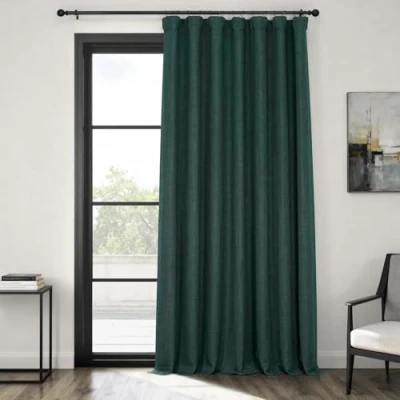 LIGHT CONTROL - This unlined linen curtain panel is considered as Room Darkening, these drapes blocks upto 80-85% of the light. Darker colors of these curtains for living room will always block more of the light while lighter shades allows more light to pass through and gives an illuminating effect to the room SOLD PER PANEL - Each linen curtain purchase includes ONE PANEL (1), measuring 100 inches (254 cm) wide by 84 inches (213.36 cm) long. Slight length variation of up to 0.5 inches may be observed due to the natural fabric and production processes. However it won't be effecting the overall functionality and look of the curtain in each design. USER APPLICATION or APPLICATION INSTRUCTIONS - These linen curtains for living rooms and bedrooms can be hanged as per choice in 3 different settings as preferred to compliment the surroundings and furniture settings: Curtain panels can be sheered on a rod using the pocket Hang with back tabs for a fixed ripple look Attached to rings using the belt and drapery pins NOTE: Hooks Not Included in the package COLOR & TEXTURE - This Focal Green Color with Linen Texture is a perfect choice for your home decor. This curtain is unlined and has a weighted hem at the bottom. KEEP IT CLEAN - These linen curtains or drapes should be dry cleaned separately everytime. Fold lines on curtain panels can be steamed out using a light iron with butter paper or garment steamer. Avoid making contact with the face fabric of linen curtains.