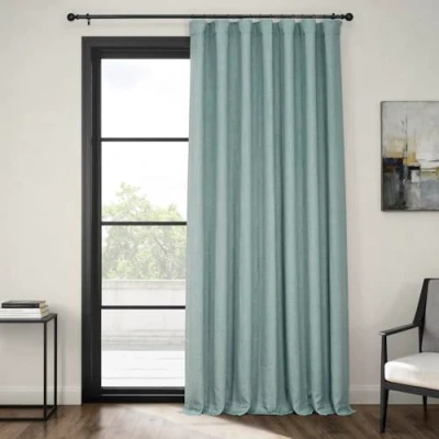 HPD Half Price Drapes Faux Linen Textured Room Darkening Curtains for Bedroom 84 Inches Long (1 Panel), 100W X 84L Extra Wide Living Home Decor, Sea Thistle