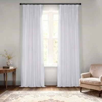 LIGHT CONTROL - This lined curtain panel is considered a Blackout, blocking 100% of the light. The Thermal Insulated lining ensures complete privacy blocks out sunlight and reduces heat and noise. SOLD PER PANEL - Once purchased you will receive ONE PANEL (1), measuring 50 inches (127 cm) wide by 108 inches (274.32 cm) in length. Each panel will be individually bagged to preserve the fabric quality. See below for the measuring guide. HOW TO HANG - Our header allows you to hang 3 ways. Curtain panels can be sheered on a rod using the pocket, Hang with back tabs Or attached to rings using the belt and drapery pins. Pole Pocket will accommodate a pole up to 1.5 inches, Hooks Not Included. COLOR & TEXTURE - This Ice Color with Velvet Texture is a perfect choice for your home decor. This curtain has a smooth off-white thermal blackout lining at the back and a weighted hem at the bottom. KEEP IT CLEAN - The curtains should be dry cleaned only. Fold lines can be steamed out using a iron or garment steamer. Avoid making contact with the face fabric.