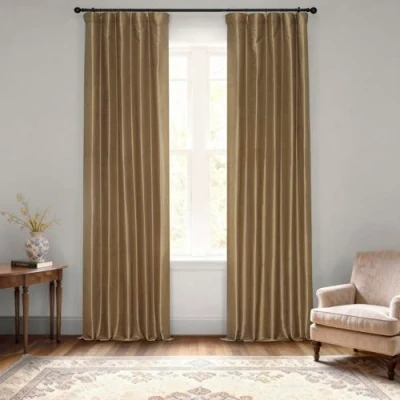 HPD Half Price Drapes Faux Silk Blackout Curtains 84 Inches Long for Bedroom & Living Room Vintage Textured Curtain (1 Panel), 50W x 84L, Flax Gold