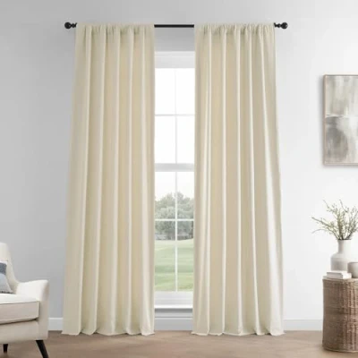 LIGHT CONTROL - This lined curtain panel is considered Room Darkening, blocking anywhere from 50-60% of the light. Darker colors will always block more of the light while lighter colors let more of the light through. SOLD PER PANEL - Once purchased you will receive ONE PANEL (1), measuring 50 inches (127 cm) wide by 96 inches (243.84 cm) in length. Each panel will be individually bagged to preserve the fabric quality. See below for the measuring guide. HOW TO HANG - Our most versatile header allows you to hang 3 ways. Curtain panels can be sheered on a rod using the pocket, Hang with back tabs for a fixed ripple look or attached to rings using the belt and drapery pins, Hooks Not Included. COLOR & TEXTURE - This Ancient Ivory Color with Linen Texture is a perfect choice for your home decor. This lined curtain has a weighted hem at the bottom. KEEP IT CLEAN - The curtains should be dry cleaned only. Fold lines can be steamed out using a iron or garment steamer. Avoid making contact with the face fabric.