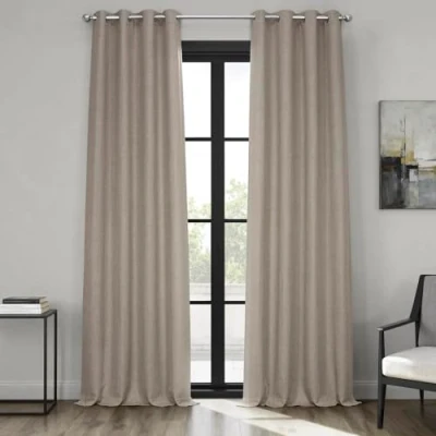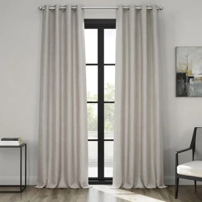 LIGHT CONTROL - This unlined curtain panel is considered Room Darkening, blocking anywhere from 80-85% of the light. Darker colors will always block more of the light while lighter colors let more of the light through. SOLD PER PANEL - Once purchased you will receive ONE PANEL (1), measuring 50 inches (127 cm) wide by 84 inches (213.36 cm) in length. Each panel will be individually bagged to preserve the fabric quality. See below for the measuring guide. HOW TO HANG - Our most versatile Grommet header allows you to hang the curtain in an easy way, Finished with 8 nickel finish grommets (1.6" Opening). It will accommodate a rod up to 1.5 inches in diameter. COLOR & TEXTURE - This Oatmeal Color with Linen Textured is a perfect choice for your home decor. This curtain has a weighted hem at the bottom. KEEP IT CLEAN - The curtains should be dry cleaned only. Fold lines can be steamed out using a iron or garment steamer. Avoid making contact with the face fabric.