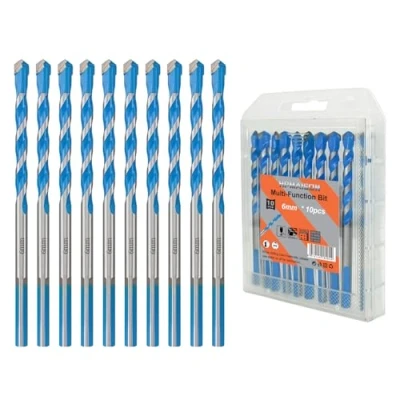 Premium Material: Carbide tipped YG8X alloy material with stronger hardness that ensures durability and longer using life. The sharpened edges maximise carbide contact with the surface, enabling faster drilling Sizes: You will get 10pcs masonry drill bits with the same sizes (6mm x 10pcs). Perfect for home DIY projects and all manner of drilling requirements Precise and Stable Drilling: The shockproof structure provides excellent stability and ensures the accuracy and stability of drilling. It is very suitable for drilling brick, concrete and other masonry materials Wide Range of Uses: Our Concrete & Masonry Drill Bit Set is suitable for drilling holes in brick, concrete, ceramic, tile, marble, cement, glass and wood, etc Triangular Handle Design: First-class performance, operation more stable. The 3-flats shank ensures you can hold it firmly, without slip and scratching. This strong tungsten carbide tip drill bit is sharp, easy to locate, drilling stably, fast speed, not breaking the border, opening neat, smooth