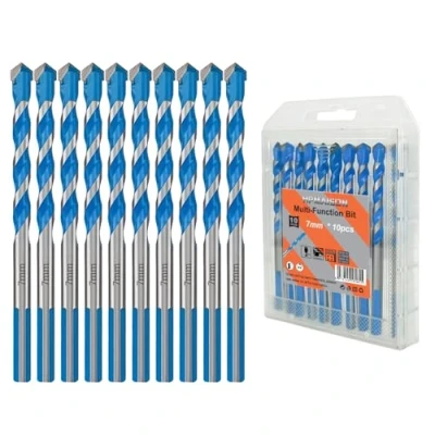 Premium Material: Carbide tipped YG8X alloy material with stronger hardness that ensures durability and longer using life. The sharpened edges maximise carbide contact with the surface, enabling faster drilling Sizes: You will get 10pcs masonry drill bits with the same sizes (7mm x 10pcs). Perfect for home DIY projects and all manner of drilling requirements Precise and Stable Drilling: The shockproof structure provides excellent stability and ensures the accuracy and stability of drilling. It is very suitable for drilling brick, concrete and other masonry materials Wide Range of Uses: Our Concrete & Masonry Drill Bit Set is suitable for drilling holes in brick, concrete, ceramic, tile, marble, cement, glass and wood, etc Triangular Handle Design: First-class performance, operation more stable. The 3-flats shank ensures you can hold it firmly, without slip and scratching. This strong tungsten carbide tip drill bit is sharp, easy to locate, drilling stably, fast speed, not breaking the border, opening neat, smooth