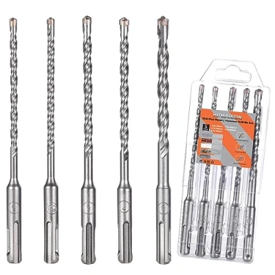 【5PCS SDS-Plus Rotary Hammer Drill Bits Set】 Included sizes - 5mm/5.5mm/6mm/7mm/8mm x 160mm. The drill bits working lenghth is 100mm, so you can drill all common dowel holes.(In order to protect your machine and personal safety, please don't use a three-claw impact hand drill to drill holes!) 【Premium Material】 HPMAISON SDS-Plus Rotary Hammer Drill Bit Set is made of high quality carbide steel, durable and non-rusting. The tungsten carbide tipped drill bit head is harder, tougher, and more resistant to extreme loads. 【Cross Drill Bits with X-Shape Head】 The Hammer Drill Bit set features an X-shaped geometry with cross flute design for optimum disassembly and ease of use. Fully hardened drill bit with a double flute spiral for efficient waste removal. 【SDS-Plus Shank】 2 Holes SDS-Plus Shank Impact Drill Bit Regular Drilling Tools for Concrete, Granite, Stone. It provides optimum removal of dust & debris via rounded spiral geometry, more efficiently. 【Widely Uses & Application】 Suitable for drilling holes in concrete, brick, brick wall, stone, cement, block, marble, granite and masonry. Fit for all drills with SDS-Plus holder such as: compatible with Bosch, compatible with Makita, compatible with Hilti, compatible with Einhell, compatible with Kress, compatible with Dewalt and other brands machine. (Notes: The SDS Plus drill bit will only fit standard SDS Plus, not the SDS MAX)