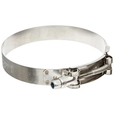Material: 304 stainless steel; meets or exceeds SAE specification; J1508 for T-bolt clamps Clamp effective range: 108 millimeter-116 millimeter (4.25 inch-4.57 inch) Fits hose with inside diameter: 4 inch (102 millimeter) Band width: 19 millimeter Maximum torque specifications: 75 inch pounds