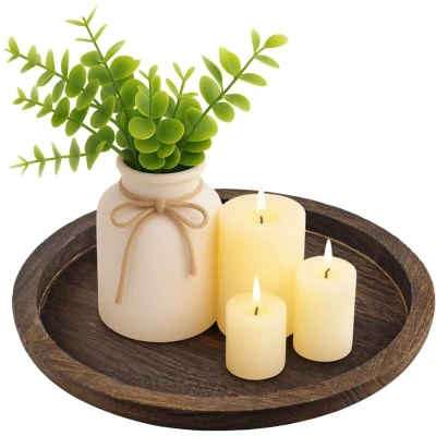 General description Our wooden candle tray is a beautiful centerpiece for any dining table, living room, or coffee table, perfect for flameless candles, tea lights, succulents, vases, or other decorative items. Made of premium paulownia wood, this vintage candle tray showcases a stunning organic wood grain, making it both lightweight and durable. It is suitable for kitchen islands, console tables, bathroom vanities, nightstands, or any area you like, adding a touch of rustic style to your farmhouse. Technical specifications Type: Candle Tray Material: Paulownia Wood Usage Ideal for displaying flameless candles, tea lights, succulents, vases, or other decorative items. Can be used in various settings such as dining tables, living rooms, or coffee tables. Other information Package includes 1 x Wooden Candle Tray.
