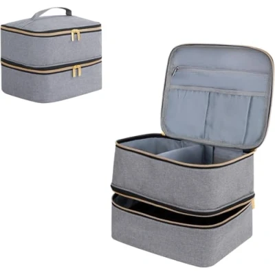HPVERDALIVING Nail Polish Case & Kit Storage Bag Double Layer Organiser with Removable Trays for Bottles, UV Lamp, Portable Cosmetic Makeup Travel (Grey, 30 Bottles)
