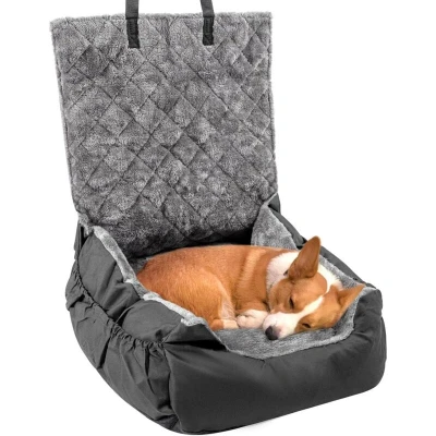 Made from durable, scratch-resistant Oxford cloth, this car seat ensures long-lasting use while providing unmatched comfort with its ultra-soft coral fleece lining. Safety is our priority, which is why the adjustable belt and rust-proof buckle keep your pet secure while the non-slip rubber base adds stability during drives. Suitable for front and back seats, its universal design fits most vehicles, including cars, SUVs, and trucks. Convenience meets functionality with two large side pockets for storing toys and accessories, while the high-back design keeps your car seat free from scratches, dirt, and pet hair. Easy to disassemble, the seat is machine washable, making maintenance a breeze. Whether you're heading on a road trip or a quick drive to the park, this car seat doubles as a portable travel bed, offering a cozy resting spot for your pet. Choose the right size based on our size chart for the perfect fit. Rest assured, our dedicated customer service team is here to ensure your