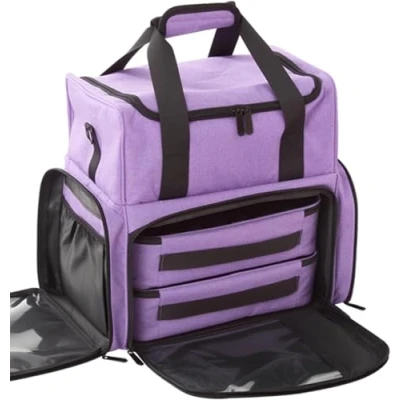 HPVERDALIVING Professional Nail Polish Carry Case with Removable Trays Holds up to 80 Bottles, Large Manicure Organiser Bag for Technician Tools, Lamps & Supplies, 600D Oxford Fabric (Purple)
