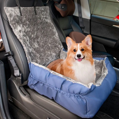 Made from durable, scratch-resistant Oxford cloth, this car seat ensures long-lasting use while providing unmatched comfort with its ultra-soft coral fleece lining. Safety is our priority, which is why the adjustable belt and rust-proof buckle keep your pet secure while the non-slip rubber base adds stability during drives. Suitable for front and back seats, its universal design fits most vehicles, including cars, SUVs, and trucks. Convenience meets functionality with two large side pockets for storing toys and accessories, while the high-back design keeps your car seat free from scratches, dirt, and pet hair. Easy to disassemble, the seat is machine washable, making maintenance a breeze. Whether you're heading on a road trip or a quick drive to the park, this car seat doubles as a portable travel bed, offering a cozy resting spot for your pet. Choose the right size based on our size chart for the perfect fit. Rest assured, our dedicated customer service team is here to ensure your