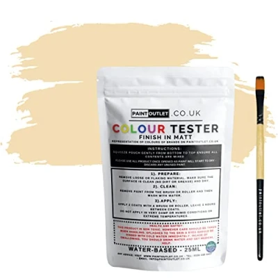 HQC Paint Wall and Ceilings Matt Sample Colour Tester Pot with Brush Quick Drying Quality Interior Contemporary Finish Light Beige 25ml