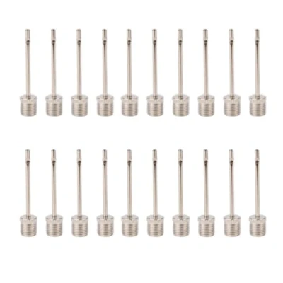 Product Specification- This product includes 20 ball pump needles, the size of each ball pump needle is: length 38mm, tube diameter 1.88mm, thread diameter 7.5mm. Just the right size and enough quantity for your daily use. Durable Construction- Made with durable stainless steel, these adapter needles are built to withstand repeated use, ensuring they last for a long time. Wide Application- These ball pump needles are suitable for all kinds of inflatable balls, such as: basketball, football, volleyball, rugby, yoga ball, etc. Also suitable for beach balls, swim rings, inflatable pillows and arm loops. Universal- The Standard Shape means that you can use it with different kinds of air pump, hand pump, ball pump, bike pump, gauges. Compact and Portable- The adapter needles is compact and portable, making it easy to carry them with you wherever you go. Whether you're at the field, the gym, or on the road, you'll always be prepared to inflate your sports balls.