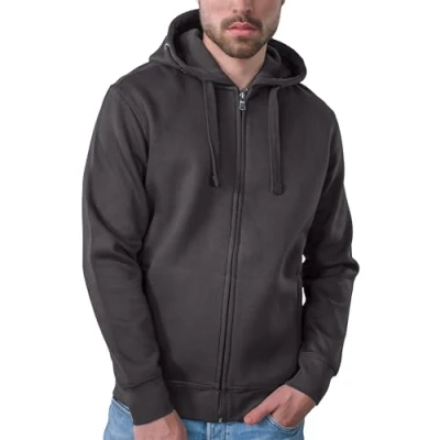Men's sweat jacket: the modern, classic cut zip hoodie is made from a supple blend that contains 70% cotton and 30% recycled polyester. Thanks to its fine surface structure, it is ideal for textile finishing Modern: the basic hoodie jacket shines with a hood with a wide tone-on-tone cord and 6 metal eyelets in antique look. The 2 side pockets with zip and 2 inner pockets make them particularly suitable for everyday use Durable and versatile: thanks to shrinkage and anti-pilling pre-treatment, the men's hoodie is very durable. This makes it suitable for leisure, team sports, indoor and outdoor as well as workwear FAIR4ALL: The social initiative of the same name and founded by us ensures that our men's sweaters are manufactured and distributed under fair working conditions HRM – More than a lifestyle: we guarantee that our high-quality products are produced completely fair, environmentally conscious and without harmful substances