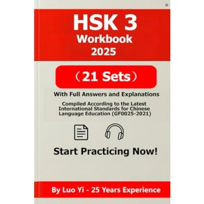 HSK 3 Workbook 2025: 21 Mock Tests (All Questions Printed, 275 Pages) + Answer Explanations via QR Code & PDF (525 Listening MP3 (630 ... with and Audio)