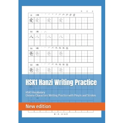 HSK1 Chinese Characters Writing Practice with Pinyin and Strokes, Hanzi Book, 8.25" x 11.68" (20.96 29.67cm),138 Pages,38 Pages Vocabulary, 100 Empty Tian zi ge