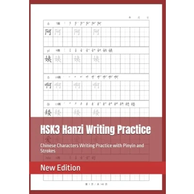 HSK3 Chinese Characters Writing Practice with Pinyin and Strokes, Hanzi Book, 8.25" x 11.68" (20.96 29.67cm),137 Pages,87 Pages Vocabulary, 50 Empty Tian zi ge