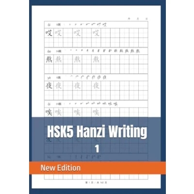 HSK5 Chinese Characters Writing Practice and Strokes, Hanzi Book, 8.25" x 11.68" (20.96 29.67cm),106 Pages,86 Pages Vocabulary, 20 Empty Tian zi ge