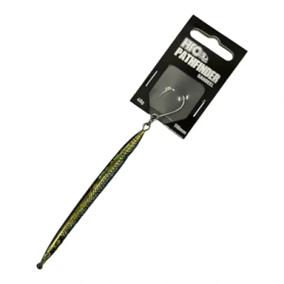 HTO Pathfinder Pilker - Sand eel-like metal lure - Length: 11cm - Weight: 40g - Finished with an HTO inline single hook - Glow spot near the hook for extra attraction - Wide tail provides extra casting distance and accuracy - Thicker at the back for a realistic swimming action - Highly effective for predators such as bass, pollack, and wrasse The HTO Pathfinder Pilker is a compact and realistic sand eel-like metal lure specifically designed for fishing sea species such as bass, pollack, and wrasse. Thanks to its thicker back, the lure has a natural swimming action during retrieval and sinking, while the wide tail provides extra casting distance and accurate placement, even in windy conditions. The pilker is finished with an HTO inline single hook for safe and efficient hooking and features a glow spot near the hook for added attraction in deeper or murky waters, making this lure particularly effective in various conditions.